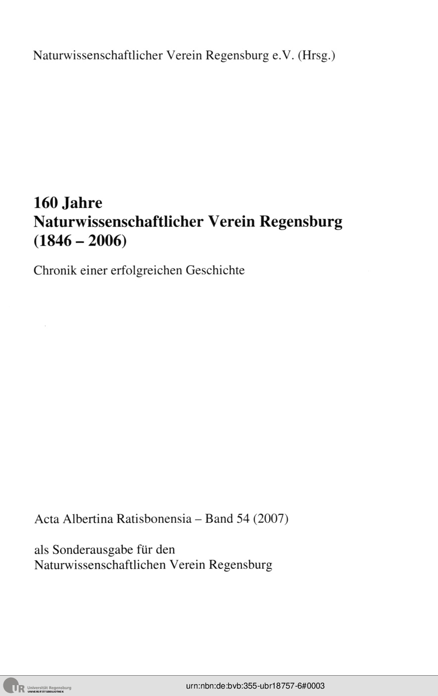 160 Jahre Naturwissenschaftlicher Verein Regensburg