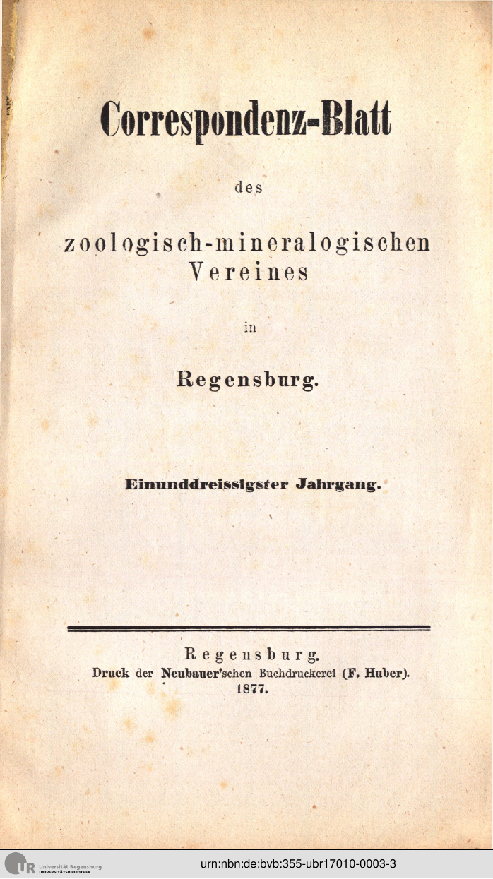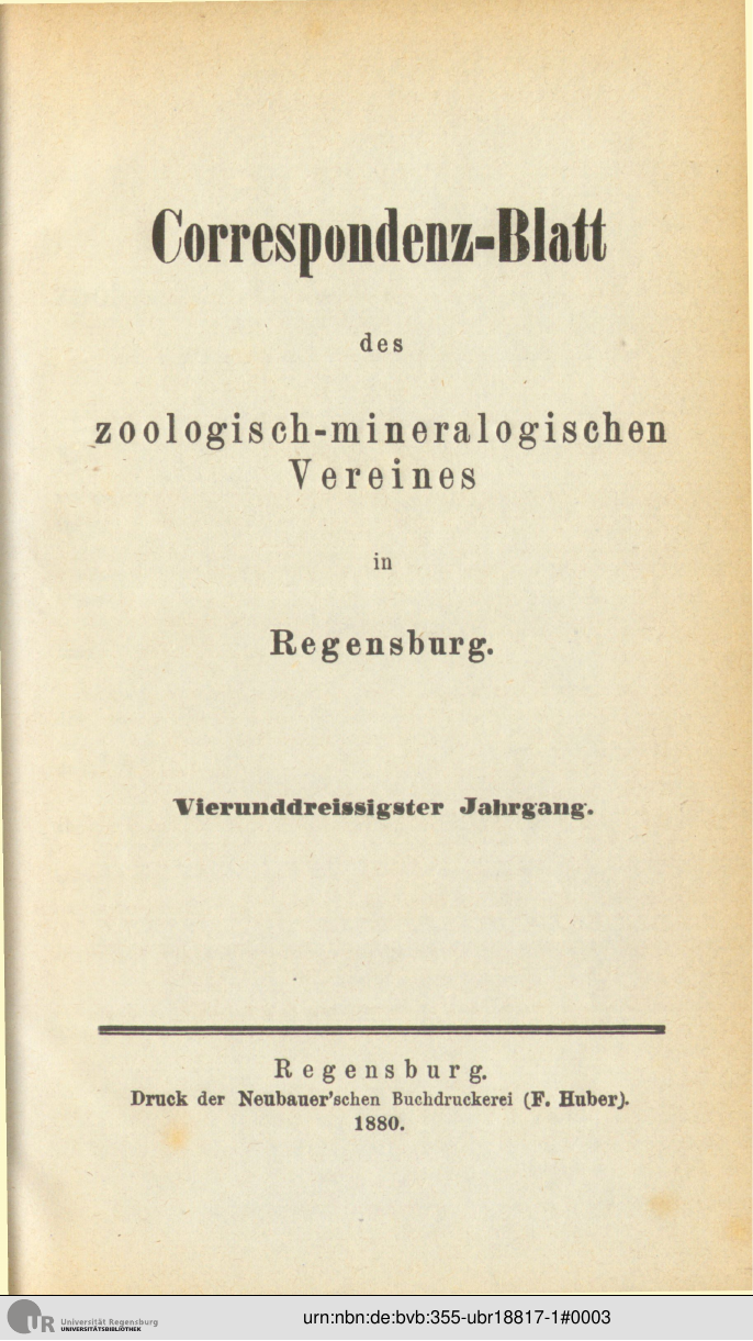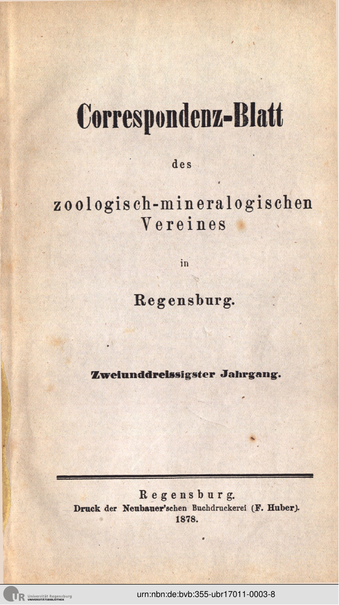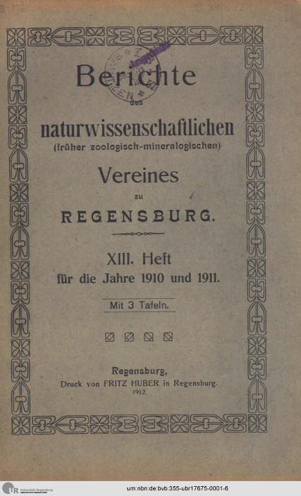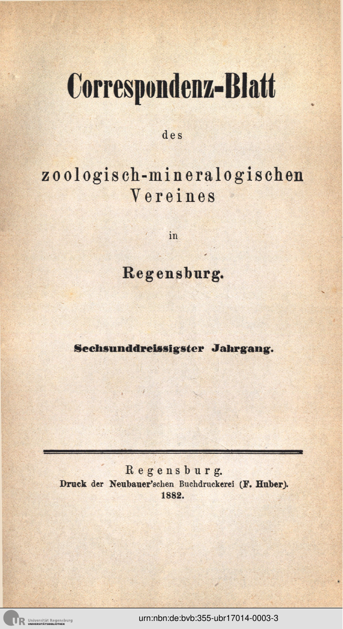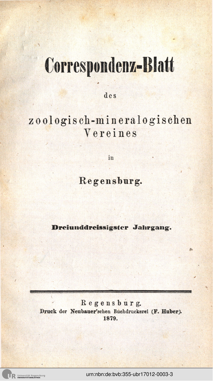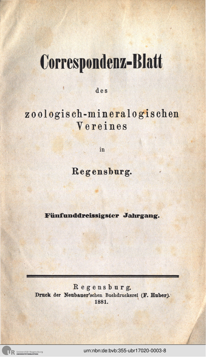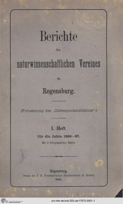 Abhandlungen des Naturwissenschaftlichen Vereines (früher zoologisch - mineralogischen Vereines) in Regensburg