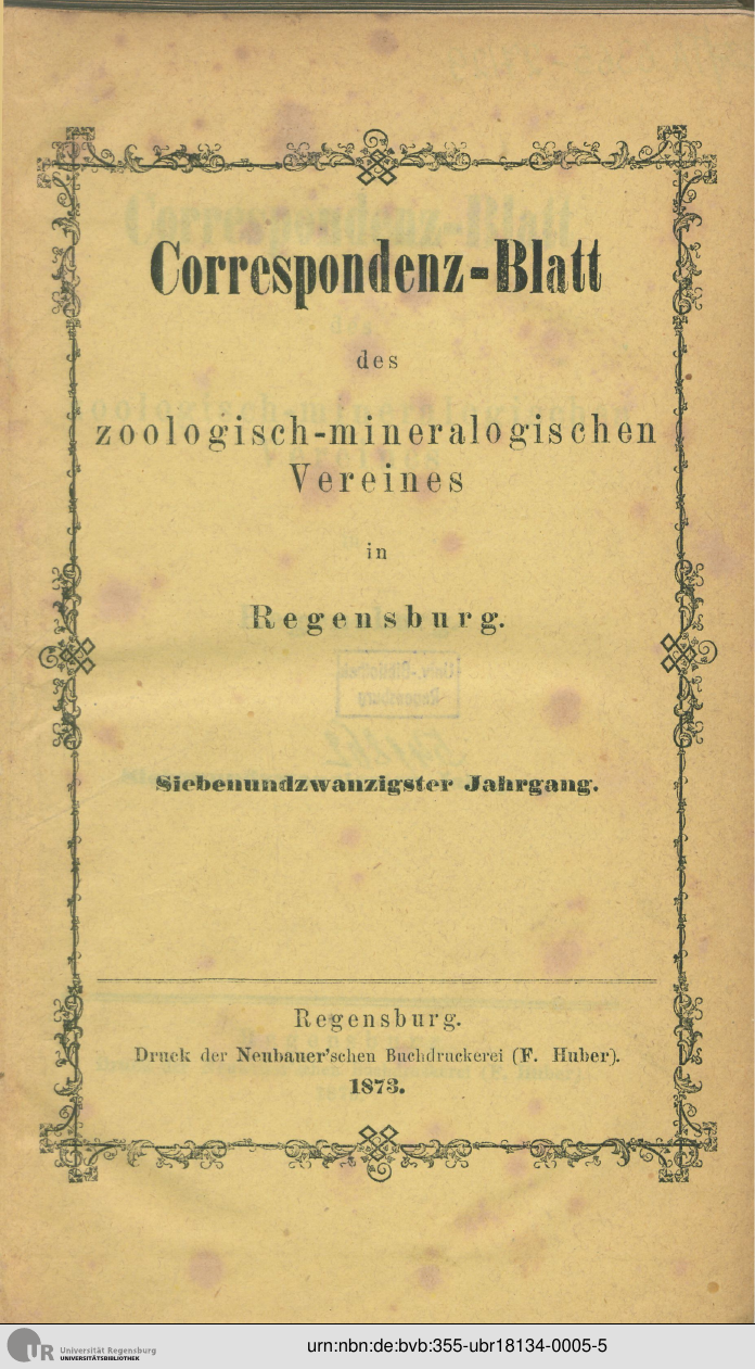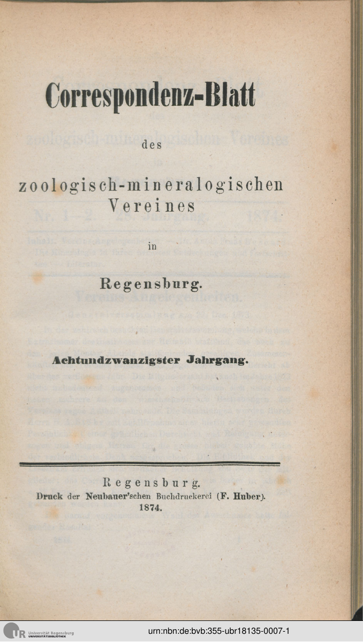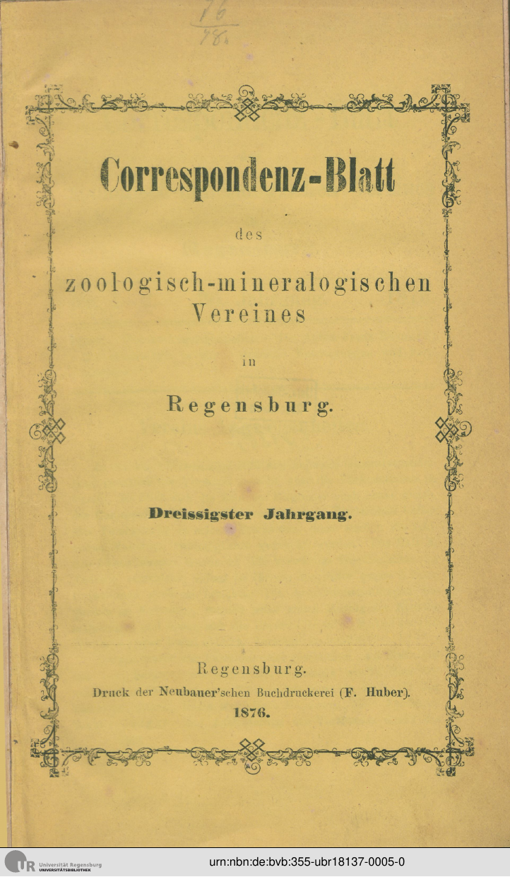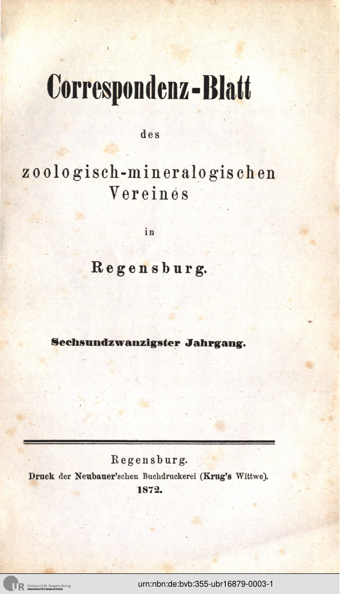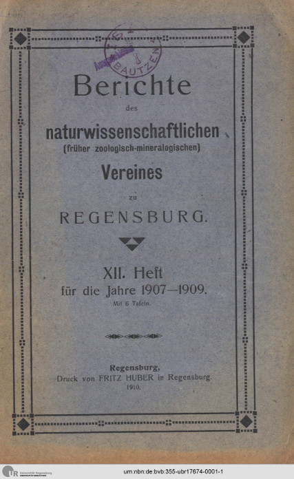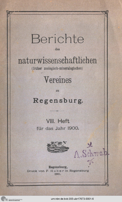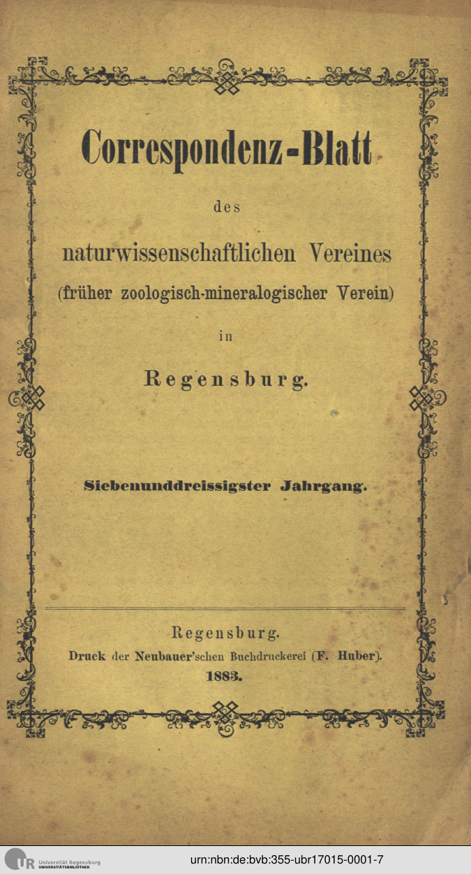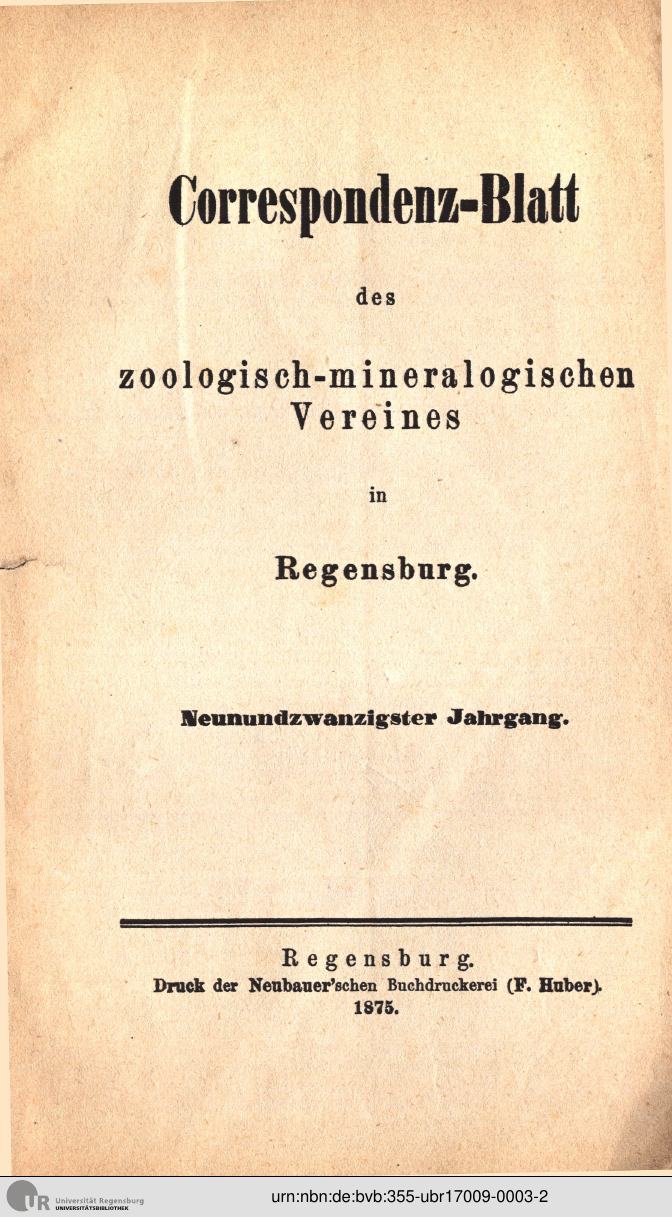 Abhandlungen des Naturwissenschaftlichen Vereines (früher zoologisch - mineralogischen Vereines) in Regensburg