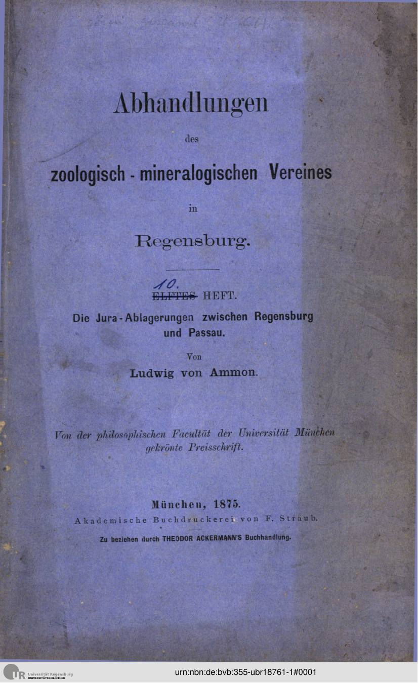 Bd. 10 (1875)Die Jura - Ablagerungen zwischen Regensburg und Passau