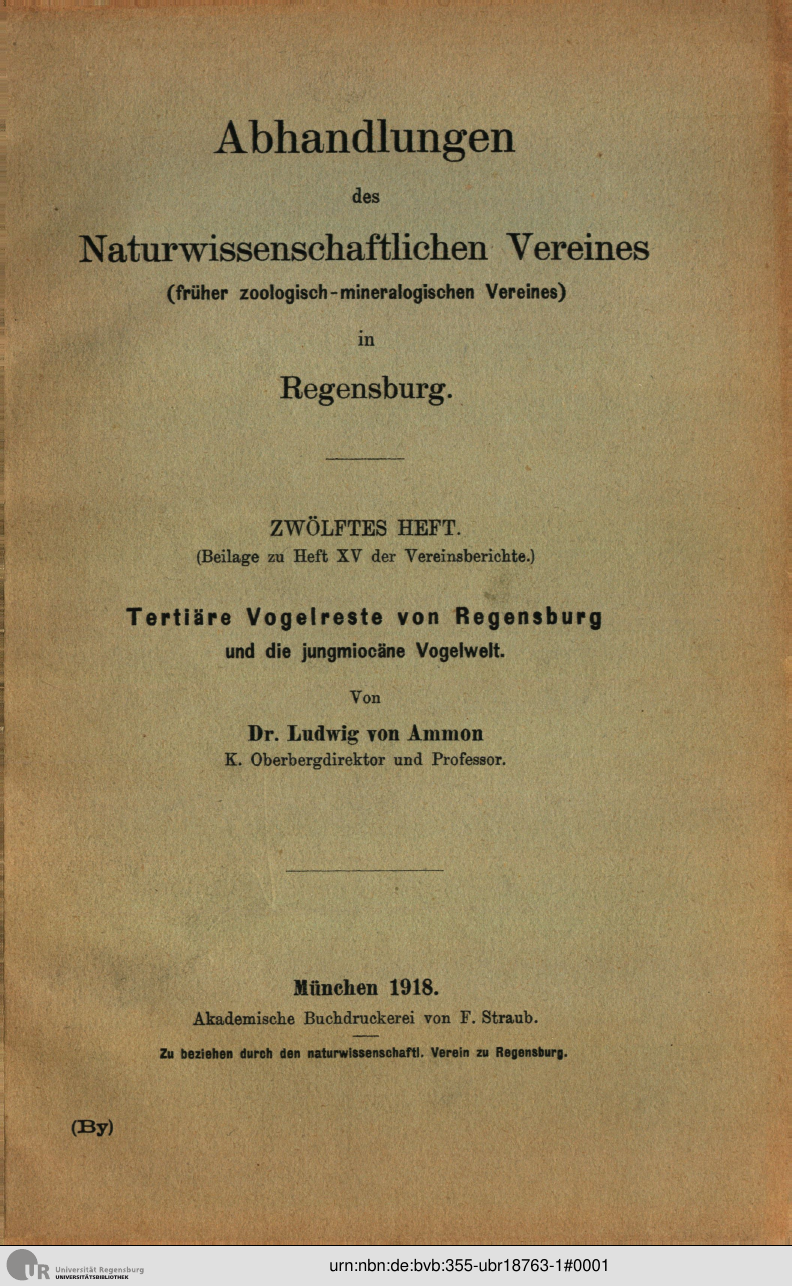 Bd. 12 (1918)Tertiäre Vogelreste von Regensburg und die jungmiocäne Vogelwelt.
